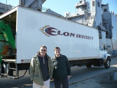 On Dec. 17, Digre delivered the books to the Norfolk (Va.) Naval Base, where they were loaded onto a U.S. Navy ship for transport to Africa. The books had been collected throughout fall semester with the help of Carl (CC) Cowan and his crew from Elon’s moving and setup department.