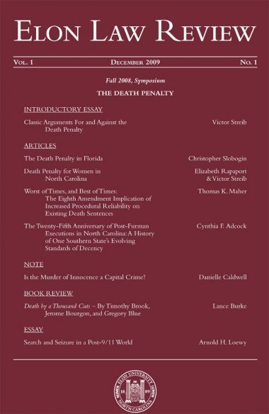 Volume 1, Issue 1 of the Elon Law Review focuses on the application of the death penalty in North Carolina and nationally. The edition is now available online and for subscription.