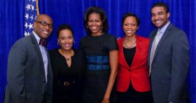 David Morrow ’10, an attorney with BuckleySandler LLP in Washington, D.C., recently spoke with First Lady of the United States Michelle Obama at a February 21 Obama Victory Fund luncheon. Morrow is a fundraiser with Gen44, the young adult fundraiser arm of the Obama Campaign.