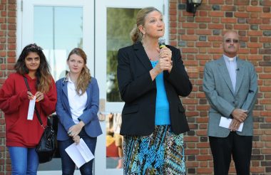 University Chaplain Jan Fuller led a brief ceremony at College Coffee in Scott Plaza to commemorate the 11th anniversary of the terrorist attacks. Father Gerry Waterman, Elon’s Catholic campus minister, and three students shared prayers from the Christian, Muslim and Jewish faith traditions. The prayers were selected to encourage the Elon community to live lives grounded in “respect between religions and between people,” Fuller said.