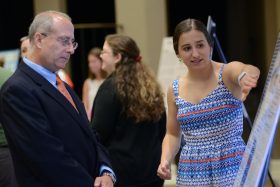 Each April, the university community gathers to celebrate undergraduate research during the annual Spring University Research Forum (SURF). Students also may participate in Elon’s Summer Undergraduate Research Experiences (SURE), which offer intensive experiences led by faculty mentors. Many Elon scholarship and grant programs support undergraduate student research activities.