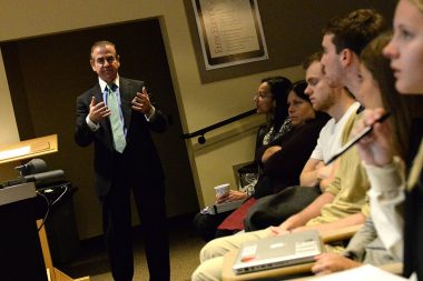 During his hour-long lecture, the PR veteran explored a variety of topics relating to his industry, including reputation management, misconceptions and misunderstandings of the field, and the skills and attitudes needed to succeed. Additionally, he touched on recent public relations gaffes and successes, examining the missteps of Volkswagen as well as the PR homeruns of CVS pharmacy and Chipotle Mexican Grill.