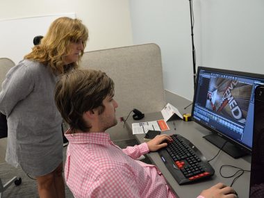 For his capstone project, Miralia meticulously built an interactive tour of the iMedia facility on the first floor of Long Building, working – in his estimation – three hours a day most of this semester. This workload allowed him to extensively research his idea and become familiar with a modeling software called Photogrammetry, as well as Unreal Engine, a suite of tools used by game developers.