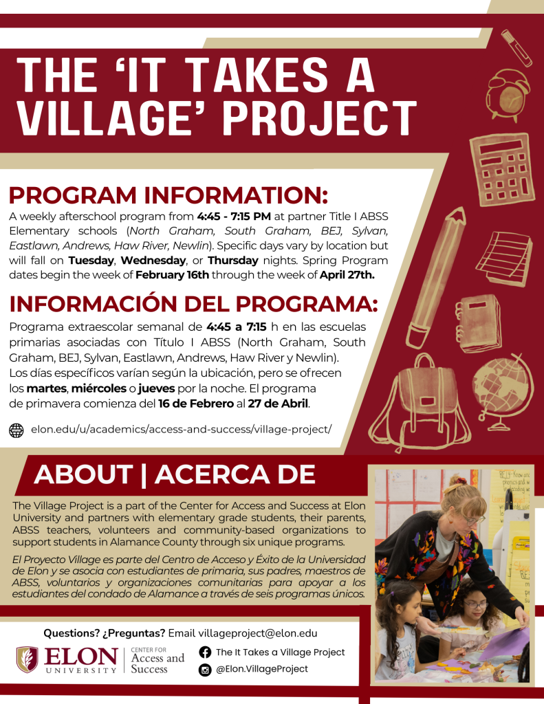 Expert tutoring is provided by dedicated ABSS teachers and passionate Elon University students, who work together to support each student’s academic success and growth. Each participating student will receive a nutritious meal at every session.