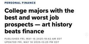 Yes, art history majors do find jobs after graduation! Check out this 2025 article from CNBC or see for check out The Labor Market for Recent College Graduates.