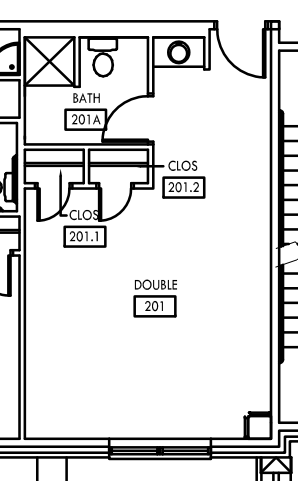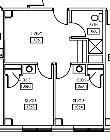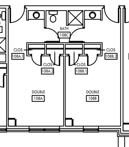 • Room types: Doubles rooms with a bathroom in between the two spaces; pod style that will have 2-4 single rooms with 1-2 bathrooms in the suite along with a shared common space; triple rooms with a bathroom in the room.