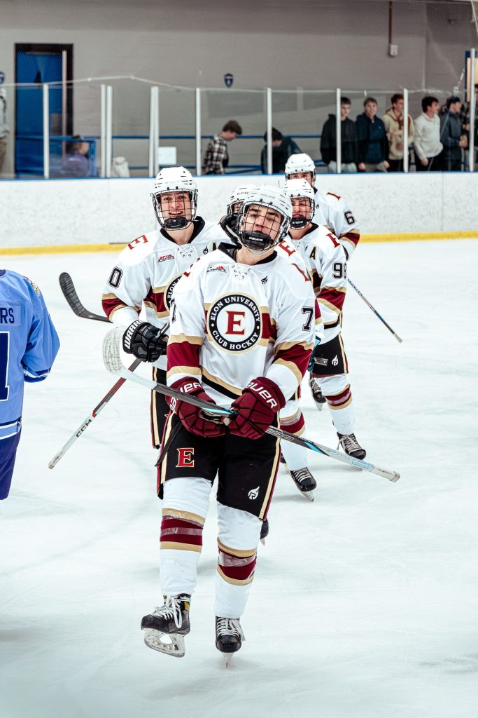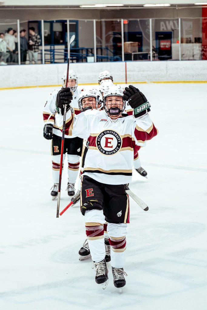 Founded in 2009 by T.J. O’Malley, Elon Club Hockey began with former roller hockey players competing locally under the name “NOLE” before becoming an official club sport in 2010 and playing its first ACHA game in 2011. The program quickly gained momentum, highlighted by a second-place finish in the 2012 Bill J. Hart Memorial Tournament. Now based at the Orange County Sportsplex and led by an experienced coaching staff, the team continues to grow, most recently achieving one of its best seasons in 2025–26 with an 8–3–1 record, a strong playoff run, and a historic semifinal appearance at the AAU D2 National Tournament.