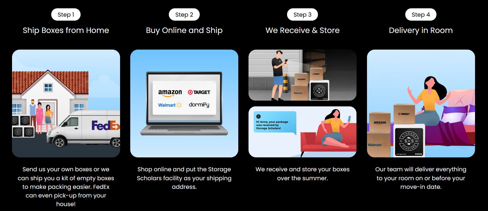 Step 2: Shop online and put the Storage Scholars facility as your shipping address.