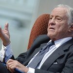 Bradlee remembered Lyndon Johnson as someone who “didn’t trust the press worth a damn, and he didn’t like people who went to Harvard or Yale,” drawing laughter from the audience since Bradlee is a 1942 Harvard graduate. “But he was extremely entertaining and he was also a hell of a good president.”