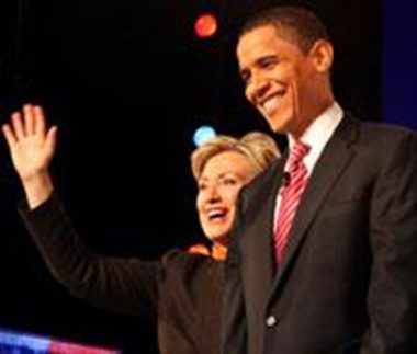 Hillary Clinton and Barack Obama wave to the crowd following their January debate in Myrtle Beach.
