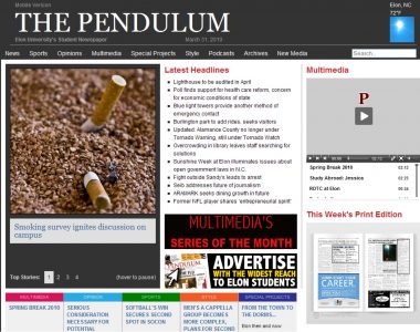 The Pendulum Online, the Web companion to The Pendulum weekly student newspaper, was named a 2010 finalist in the Associated Collegiate Press Online Pacemaker competition March 31. The Pacemaker is the highest honor ACP gives its members.