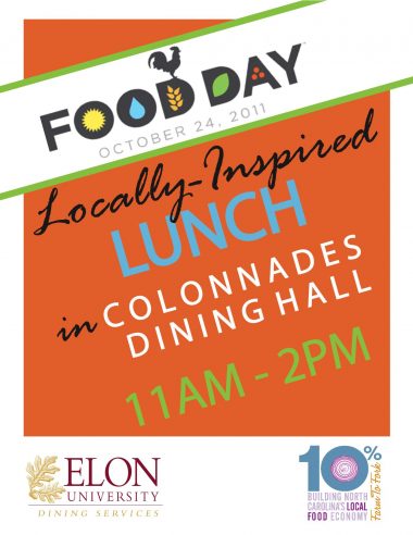 In honor of National Food Day, Elon Dining Services is hosting a locally inspired lunch in Colonnades Dining Hall on Monday, Oct. 24 from 11 a.m. to 2 p.m. The lunch is $9.95 a person.