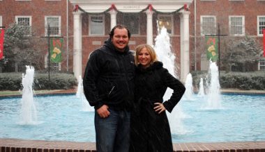 The couple comes to campus as often as they can, particularly for Homecoming and whenever Elon’s football team plays Appalachian State. They returned to campus one more time in 2011 to take their engagement photographs and married on Oct. 8, 2011, in Greensboro, N.C.