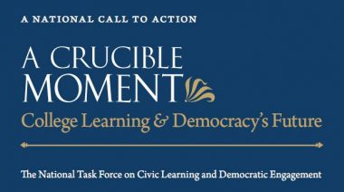 The National Task Force on Civic Learning and Democratic Engagement is holding an audioconference on Wednesday, Feb. 22 featuring Caryn McTighe Musil to discuss the task force’s recent report, “A Crucible Moment,” which is the latest to argue that civic education is lacking in the experience of most American college students.