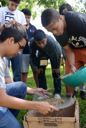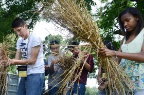 High school scholars in the university's college access and success program receive a hands-on lesson on the history and complexity of wheat cultivation.