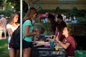 “During my freshman year it was exciting that people were able to help me, and we got done really fast,” said junior psychology major Ashley Brown of Upper Marlboro, Md., who assisted several families in just the first half hour of move-in. “I wanted to be able to help freshman this year, and the parents are really grateful that we’re here to help, especially with the girls. Girls tend to bring a lot of stuff!”