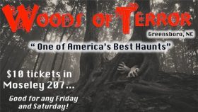 The Woods of Terror opens at 7 p.m. until 11 p.m. and is located at 5601 N. Church St. in Greensboro, N.C. 27455.