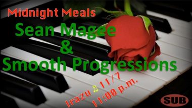 Come out to Midnight Meals to listen to our awesome student performer Sean Magee who will be rocking on the piano. Then, stick around for a sneak peak of the Smooth Progressions set before their concert on Nov. 9.