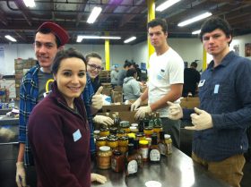 Elon in Los Angeles students spent Saturday volunteering at University of Southern California’s Friends and Neighbors Day. Students packed and organized food into boxes alongside USC students at the Los Angeles Regional Food Bank.