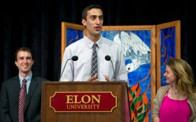 Patel was one of six spiritual leaders at Elon’s 2013 Spring Convocation focused on finding common ground in a diverse world. He also was among the distinguished panelists who took part in the university’s 2011 Spring Convocation about the challenges facing society.