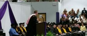 The associate professor of music spoke to graduates of River Mill Academy in Graham, North Carolina.