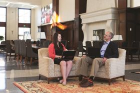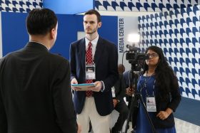 Senior Michael Bodley and junior Leena Dahal spent a week in November conducting video interviews with world technology leaders as part of Elon’s Imagining the Internet team that covered the Global Internet Governance Forum in Brazil. The experience was just the latest of many opportunities the two have had during their time at Elon. Besides traveling to New Orleans, Philadelphia and Austin for college media conferences representing The Pendulum student newspaper, Bodley completed an internship at The Baltimore Sun in 2014 and spent 10 weeks last summer as part of the Carnegie-Knight News21 investigative reporting initiative, with work published by major national publications, such as The Washington Post and NBC News. “Elon has ensured that I’ve learned a great deal outside the classroom, providing me with the kind of real-world, real-life experiences that are a true difference-maker in the job market,” Bodley says. Dahal is an Elon Lumen Scholar studying post-disaster communication strategies in her native nation of Nepal. She is also researching refugee resettlement in Greensboro, N.C., with her mentor, Assistant Professor of Anthropology Mussa Idris. As an International Fellow, she has traveled to several cities to learn about American culture, politics and society. “At Elon, engaged learning isn’t just a phrase on a website or classroom syllabi. It’s intrinsically woven into everything we do,” Dahal says. “All of these real-world and hands-on experiences I’ve gained here have supported my growth as a student, scholar and most significantly, as a human being.”