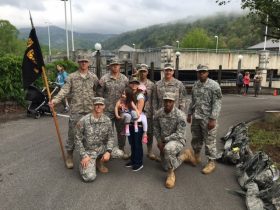 The team competed in the most grueling category, which required them to hike through the Smokey Mountains wearing service uniforms and each carrying a 35-pound rucksack. To exemplify the military’s creed of “no man left behind,” all team members were required to cross the finish line together. The team finished with a time of 7:49:45.