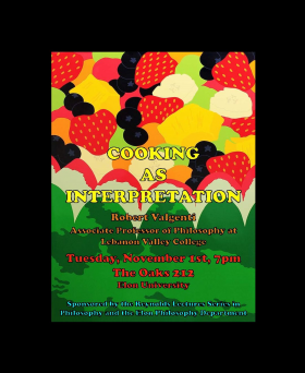 Cooking is a practical, technical, and even an artistic endeavor. But could it be a philosophical one? Is philosophy baked into the very art of cookery? Philosopher Robert Valgenti will explore this possibility in thought, the senses and a convivial gathering aimed at expanding our understanding of culinary practices.