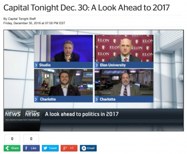 Husser was a consistent media commentator on N.C. politics throughout 2016 as the state became a high-profile battleground in the U.S. presidential election and saw tight races for the U.S. Senate and governor’s mansion. Capital Tonight, a statewide program hosted by Tim Boyum, offers a daily mix of N.C. political news and commentary.