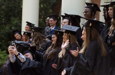 In his charge to the new graduates, Elon President Leo M. Lambert encouraged them to use the skills they have learned to help restore public trust during a time when it is lacking, noting Elon’s motto — Numen Lumen — which are Latin words denoting spiritual and intellectual light.
