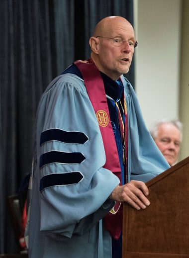 Copeland recounted the role the media has had across history in setting the national conversation, and how technological advances such as the internet have changed how people receive information, and also threatened the ability to have a have conversations based on the same sources of information. The need to track those changes and explore their implications are perfect examples of “why it’s imperative that scholarly activity remains one of the central tenets of the model we have at Elon,” Copeland said.