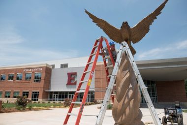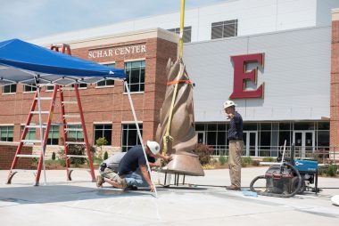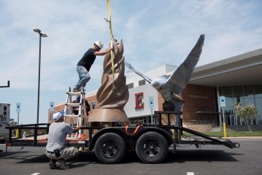 Walker said he researched the mythology behind the phoenix and viewed countless renditions while designing his interpretation of the creature that serves as Elon’s mascot. Walker said he wanted the sculpture to be “intense but not aggressive,” and he shied away from cartoonish interpretations of the phoenix.