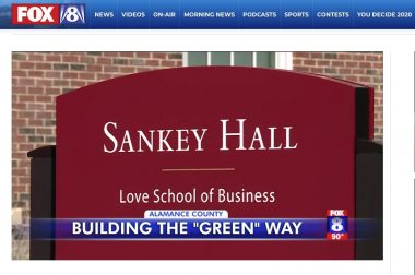 In its report, FOX 8 highlighted various features of Richard W. Sankey Hall, such as the fact that the south side of the building features more opportunities to capture the sunlight through large windows and glass walls that can then reflect into classroom spaces on the north side of the building, thus increasing natural light and reducing energy costs associated with lighting. The 30,000-square-foot, three-story building opened in 2018.