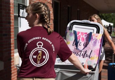 At Move-In, students have staggered move-in times depending upon which floor and building they will live on, with the first wave at 8 a.m., the next phases beginning at 9:30 a.m. and then 10:30 a.m. Students and families can find their proper move-in start times here. In addition to arriving at the assigned move-in time, students and their families should follow the driving directions to their assigned building and neighborhood. These driving directions will ensure all have a smooth move-in experience and everyone can get where they need to go as quickly as possible. Driving directions are located in Elon Bound and can also be accessed here.