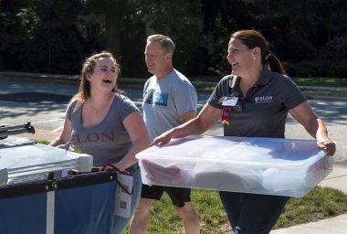 Elon offers an intense and exciting introduction to the university and college life for these new undergraduates throughout a busy New Student Orientation program. First order of business — settling into new homes, as hundreds of students, faculty and staff lend a hand to help these new members of the Elon family cart clothes, refrigerators, works of art, instruments and electronics into residential communities across campus. The campus will come alive as these new students are joined by family members and scores of faculty, staff and current students eager to help them settle in and start their academic journey at Elon.