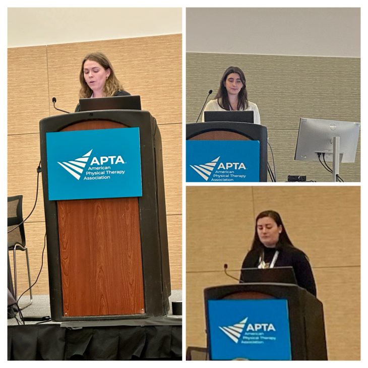 Eight abstracts on diverse topics ranging from cardiovascular and pulmonary, geriatrics, neurology, pelvic health and sports sections were accepted for presentation. Six of the eight presentations were done by current 3rd year DPT students. Several Elon DPT graduates also attended and presented at the conference.