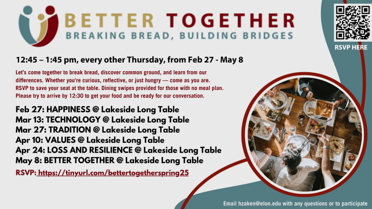 Whether you’re looking to meet new people, engage in reflective dialogue, or simply enjoy a good meal, Better Together invites you to take a seat at the table. RSVP and be part of the conversation.