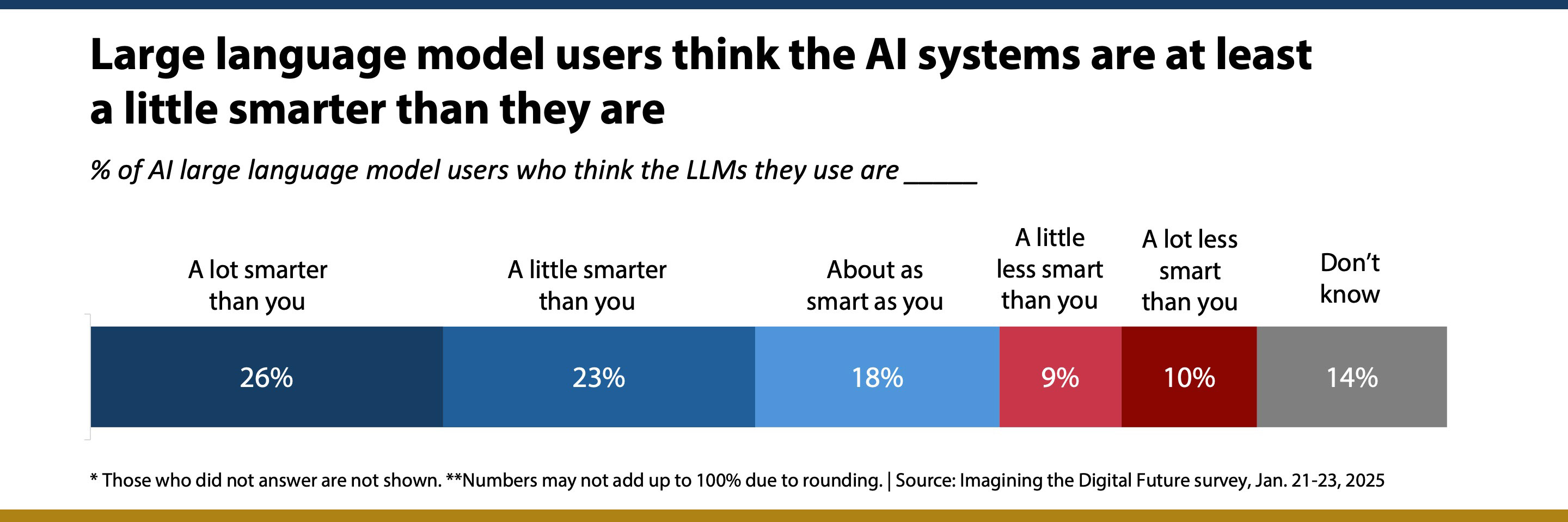 - 40% say the LLM they use most acts like it understands them at least some of the time.