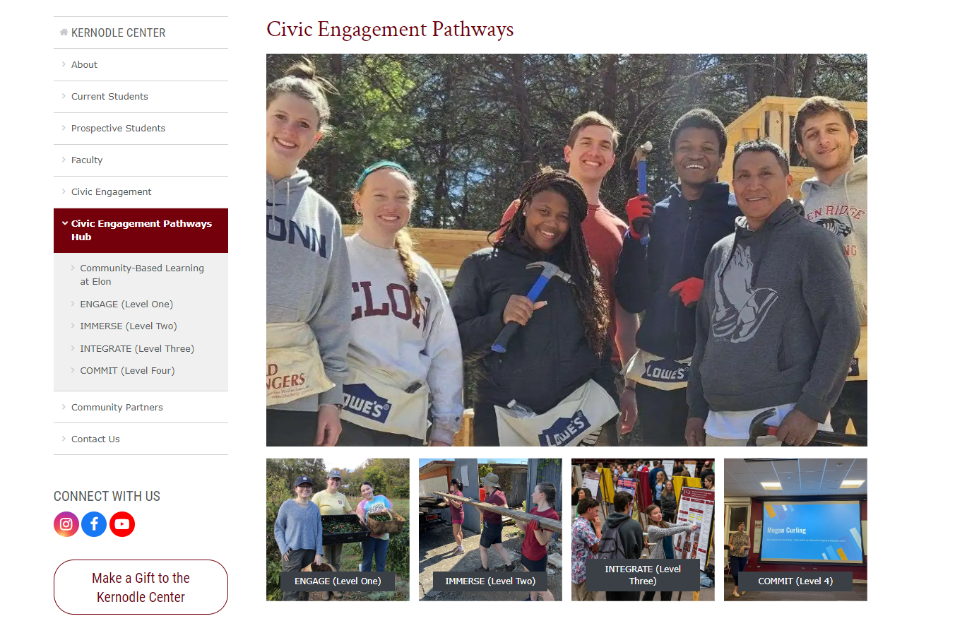 The Civic Engagement Pathways Hub is an innovative resource designed to help Elon students explore a vast array of community and civic engagement opportunities in a more structured and intentional way.