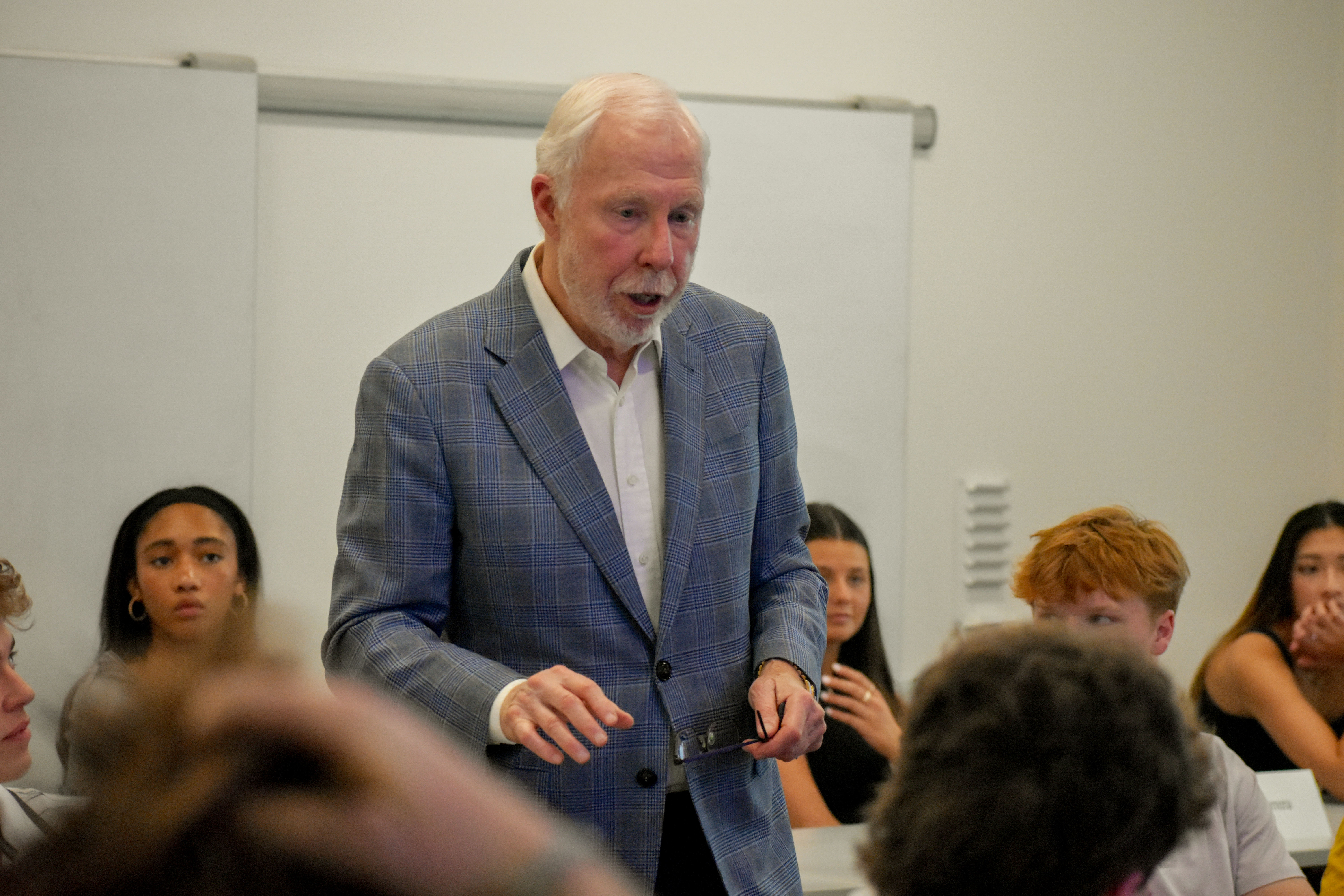 Ed Doherty urged Innovation Scholars on April 3 to “wow every guest every time.” The Doherty Enterprises founder and Elon trustee spoke at the Martha and Spencer Love School of Business, linking his people‑first philosophy to the mission of the Doherty Center for Creativity, Innovation and Entrepreneurship.
