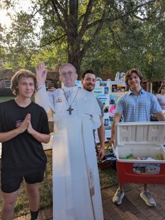 “Pope Francis has been a figure that many young people can rally around,” said Jillian Thomas ’25 “Every fall at Org Fair, folks get so excited about our cardboard cutout of him and want to take pictures with it!”