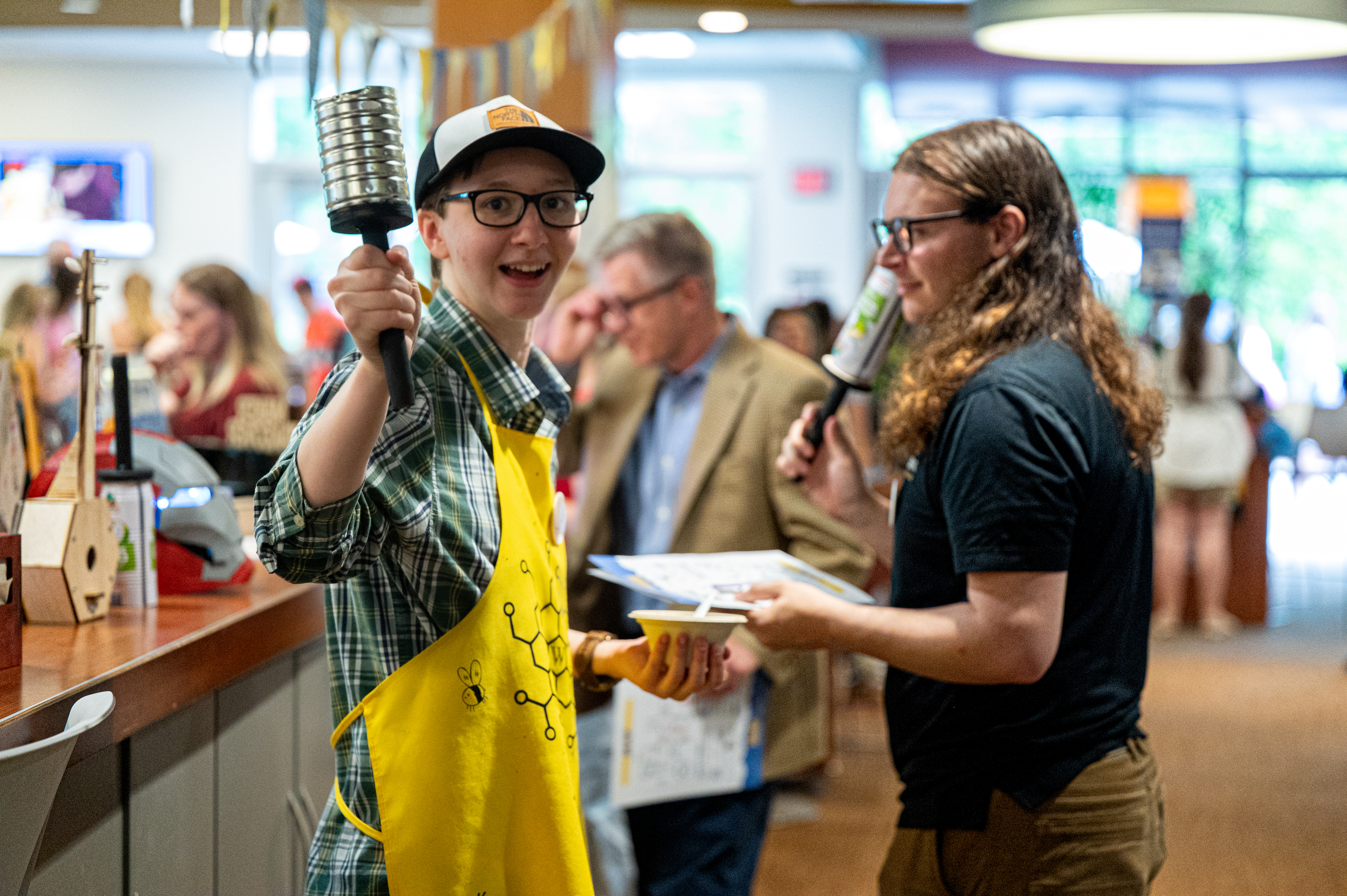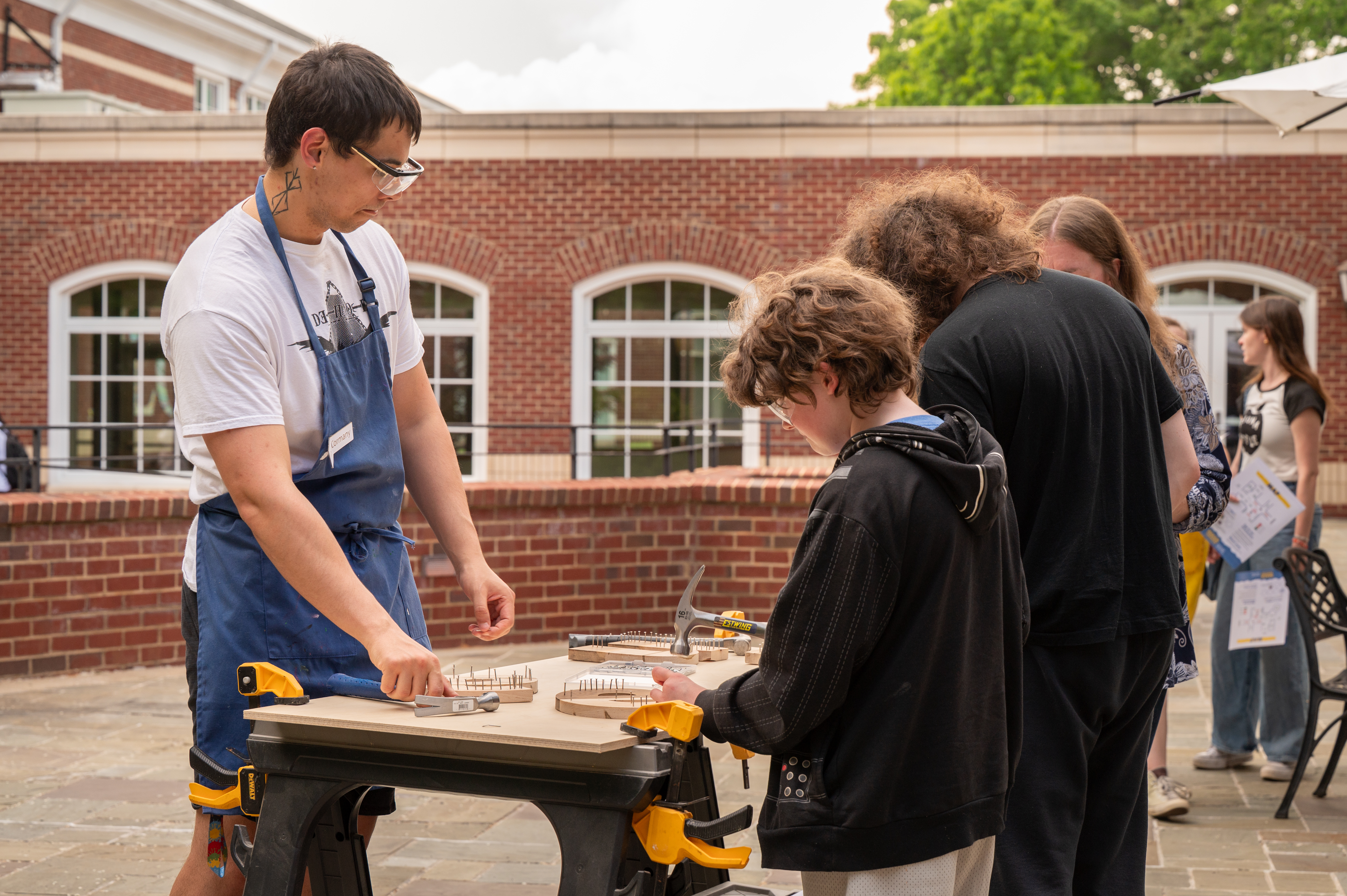 Elon staff and faculty invited their families to enjoy the projects focusing on science, service, experimentation and creativity. Finn Wilkinson ’27 is a consultant at the Maker Hub and was the emcee of the takeover event.