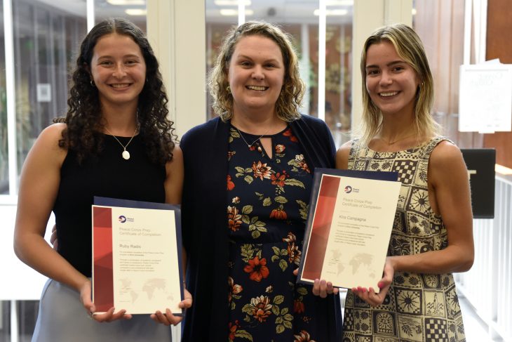Both students encourage their peers to consider the Peace Corps Prep Program. Campagna said she advises prospective participants to “stick with the process” while Radis emphasizes the importance of maintaining “an open mind and a willingness to learn because you never know who or what might teach you an important lesson.”