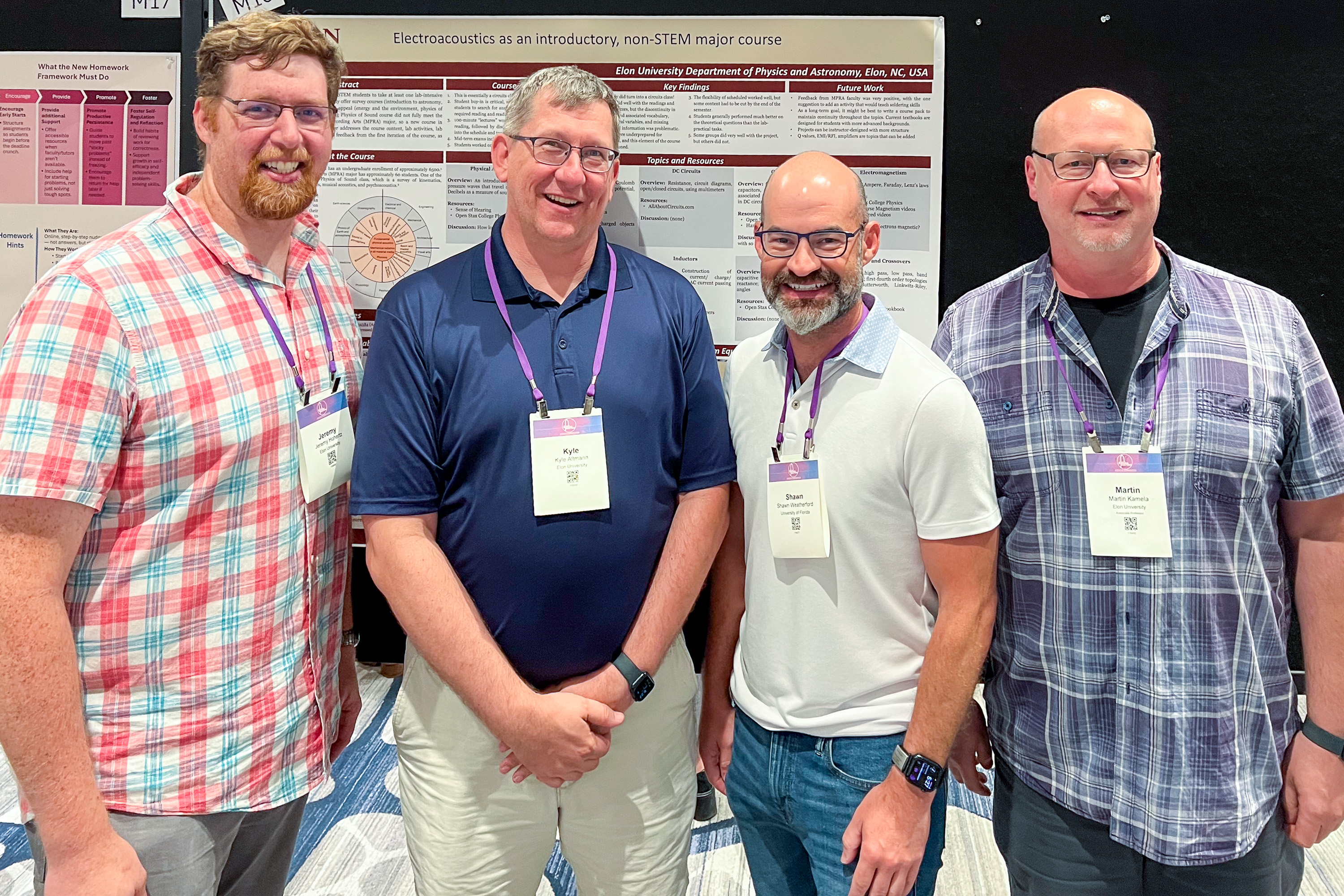 Three faculty members from Elon University’s Department of Physics and Astronomy showcased their cutting-edge research and teaching innovations at the 2025 Summer Meeting of the American Association of Physics Teachers (AAPT), held in Washington, D.C.
