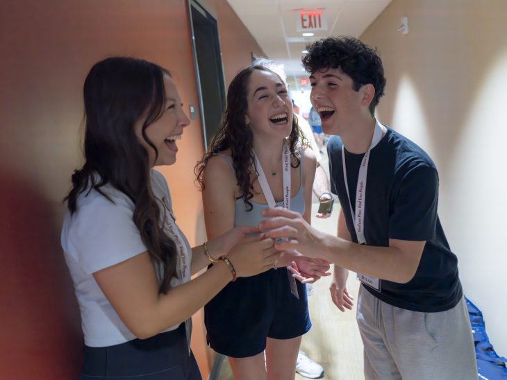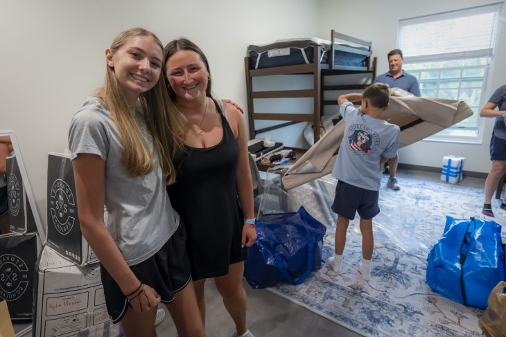 Screams of joy rang through a residence hall Friday, Aug. 22 as Samantha Probst ’29, her roommate Leah Rappaport ’29 and Jonas Hinsdale ’29 came together in a big hug – Probst telling Hinsdale he’s the reason she and Rappaport are now roommates.