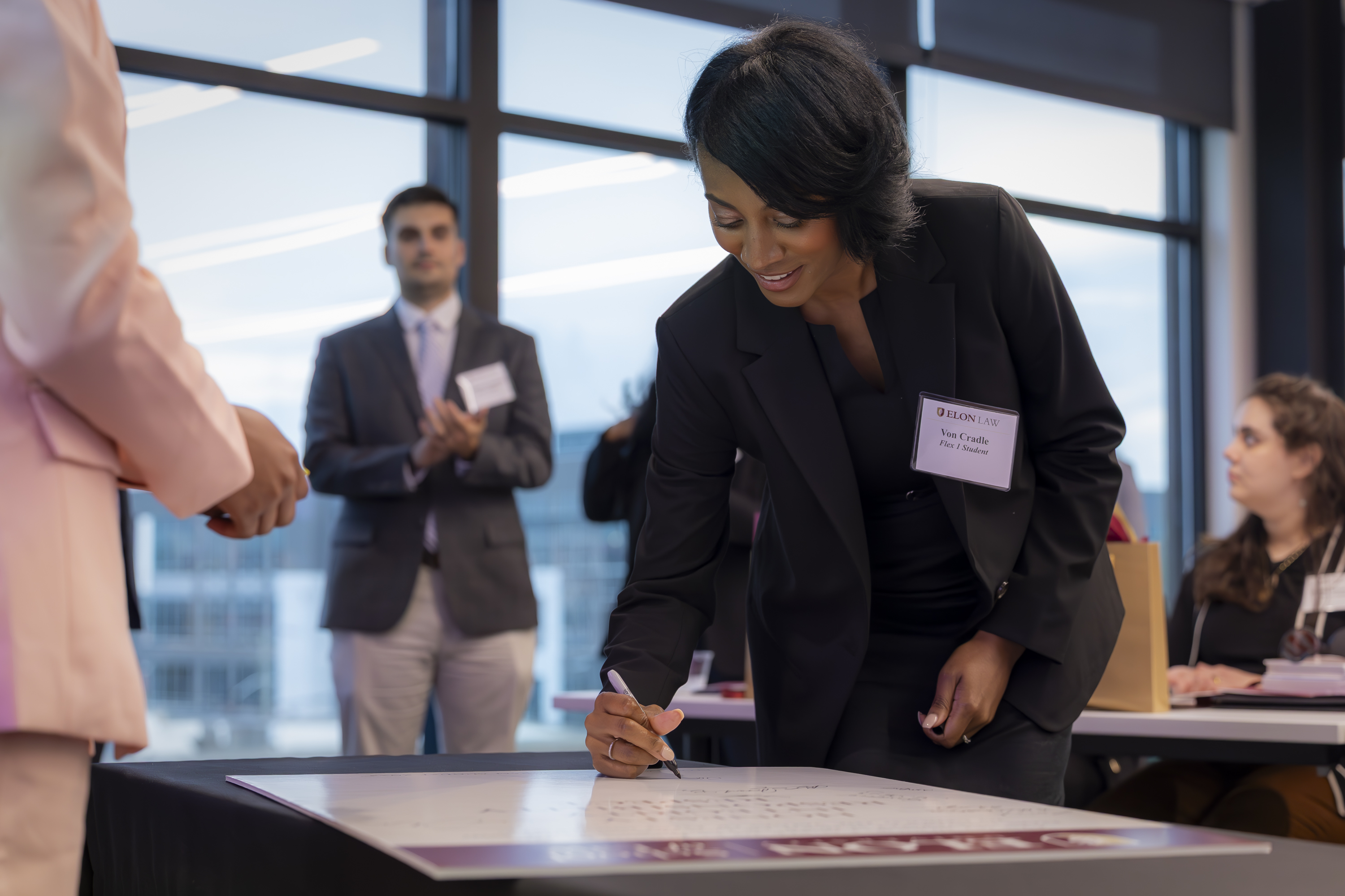 The Elon Law Flex Program in Charlotte enrolled its second cohort of 47 students during New Student Convocation on Tuesday, Aug. 12, at Elon University’s Charlotte center. The Flex Program is a part-time, in-person, evening program for place-bound students in the Charlotte area.