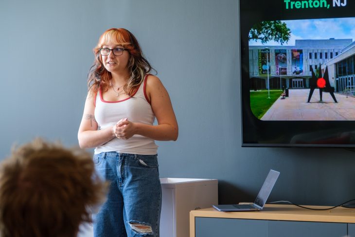Morgan Micharski ’26 spent the summer at the New Jersey State Museum. Micharski worked in the planetarium and did demonstrations for visitors, like show gas discharge tubes and convection currents. They developed a new demonstration on the curvature of spacetime, which is currently being built by the museum workshop.