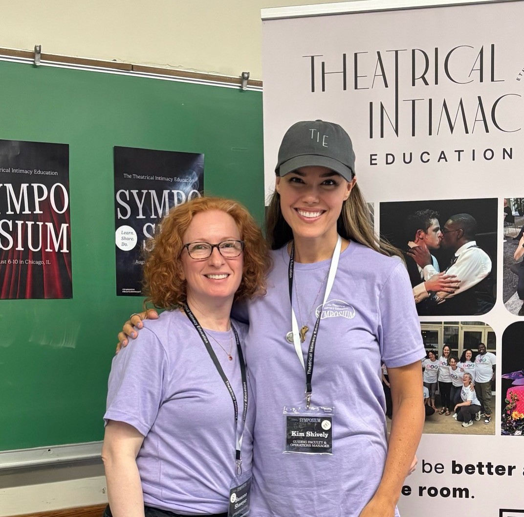 Kim Shively, associate professor of performing arts, and Susanne Shawyer, associate professor of theatre, presented research and taught workshops at the Theatrical Intimacy Education Symposium, a national conference focused on consent-based practices in the entertainment industry. The Symposium, which was held in Chicago in early August, was organized by Theatrical Intimacy Education (TIE), “a consulting group specializing in researching, developing and teaching best practices for staging and filming intimacy and more progressive practices for collaboration and leadership.”