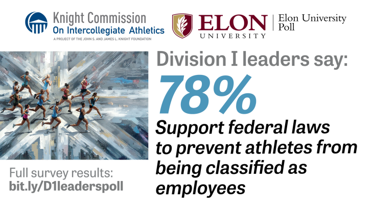 “As a pollster, when I see agreement consistently in the 70 to 90 percent range across high-stakes issues, I see a signal of shared urgency and clarity among Division I leaders that is notably rare in complex and evolving policy areas like college athletics,” said Jason Husser, director of Elon University Poll.