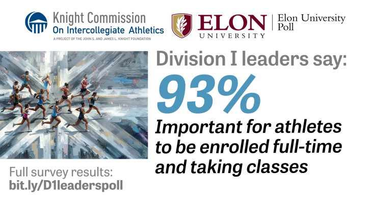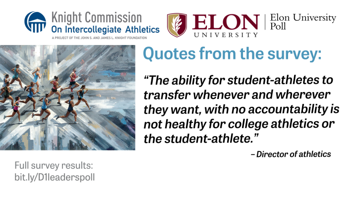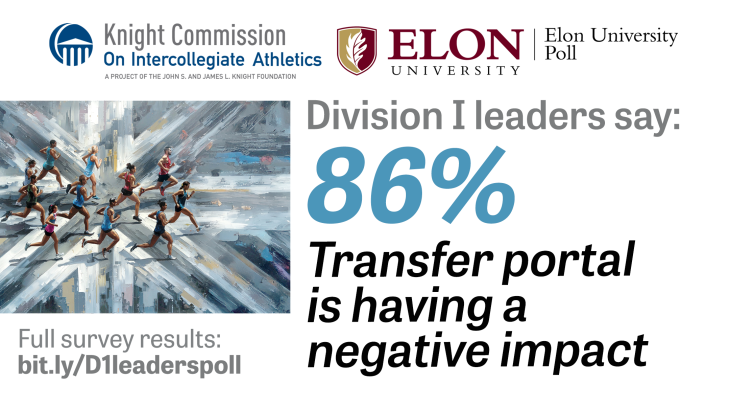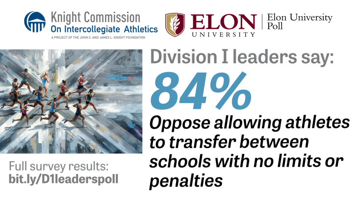 The Elon Poll/Knight Commission survey found that campus leaders are deeply concerned about the financial sustainability of their athletics programs, current college athlete transfer rules and unprecedented changes they fear will harm women’s and collegiate Olympic sports. At the same time, they expressed a near-unanimous and unwavering commitment to the academic mission of college sports, with resounding support for maintaining academic standards and prioritizing graduation.